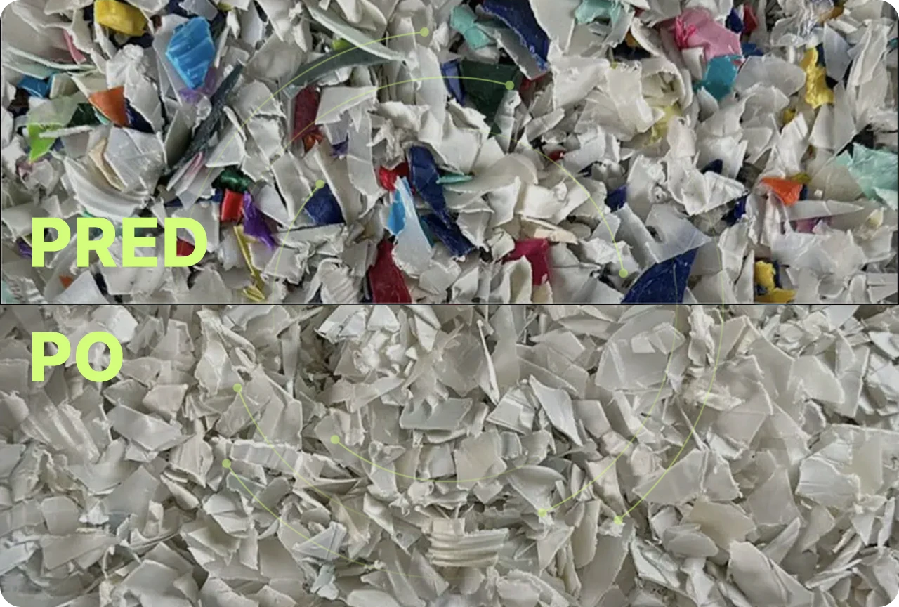 • Presne detekovať a odstrániť PP alebo PE (triedenie polymérov PP a PE).